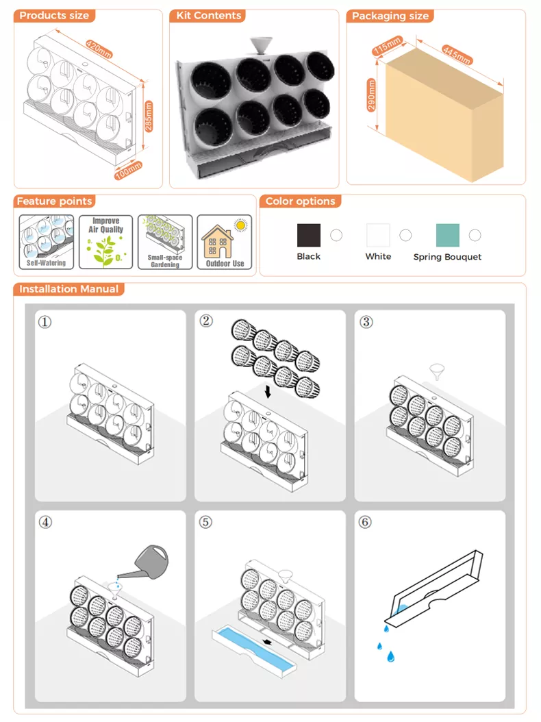 আমাদের কিচেন কাউন্টারটপ গার্ডেন হল একটি ডেস্কটপ উল্লম্ব বাগান যার মধ্যে আটটি একক 3" ক্রমবর্ধমান পাত্র এবং স্ব-জল বিল্ট-ইন অন্তর্নির্মিত। পিক্সেল গার্ডেন ডেস্কটপ হল পূর্ব-একত্রিত উল্লম্ব গার্ডেন ডেস্কটপ যা আপনাকে আপনার বাড়ি এবং অফিসে কিছু 'সবুজ স্পর্শ' যোগ করতে দেয়।