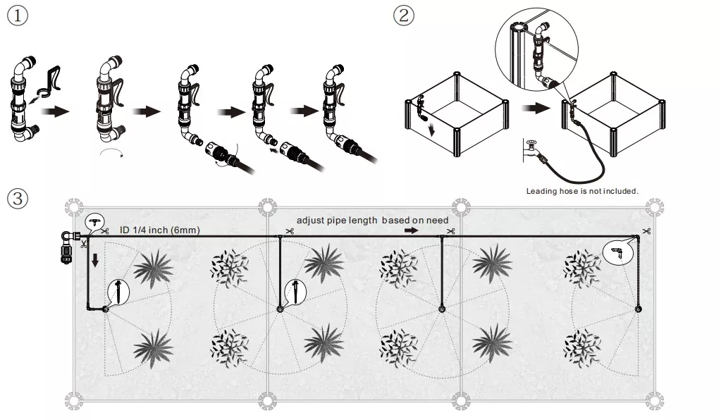 180° এবং 360° অগ্রভাগগুলি রোপণ বিছানার অবস্থান অনুযায়ী অবাধে একত্রিত করা যেতে পারে, 2-মিটার-দীর্ঘ পাইপলাইন নমনীয়ভাবে কভারেজ এলাকা সামঞ্জস্য করতে পারে। এটি একটি সংকীর্ণ এবং দীর্ঘ রোপণ ট্রফ বা একটি বর্গাকার রোপণ বাক্স হোক না কেন, এটি সঠিকভাবে আবরণ করতে পারে।