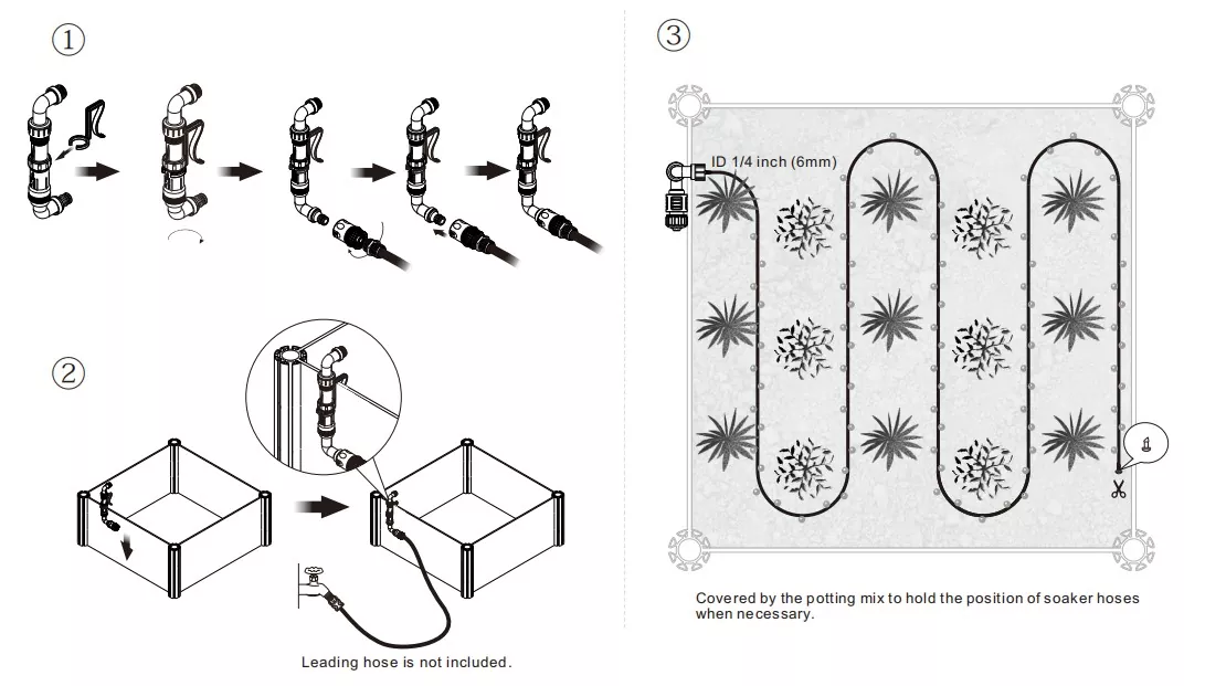 GBIK-01 গার্ডেন বেড সোকার হোস কিট সহজেই একটি দক্ষ এবং সুবিধাজনক জল তৈরি করুন আপনার বাগান বিছানা জন্য সিস্টেম এলিভেটেড গার্ডেন বেডের জন্য পারফেক্ট কয়েক মিনিটের মধ্যে এটি সেট আপ করুন এবং তারপরে এটি সহজে রেখে দিন সব ঋতু দীর্ঘ জল