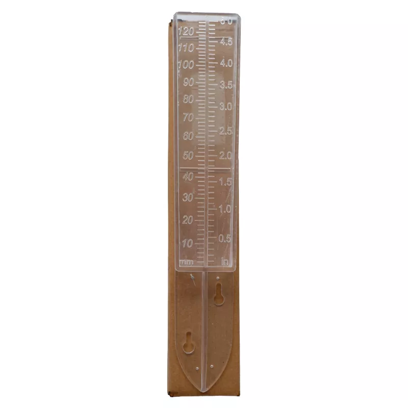 বৃষ্টির পরিমাপকটি নীচের প্রান্তে মাটিতে ঢোকানো যেতে পারে, যার জন্য রিয়েল-টাইম পর্যবেক্ষণ বৃষ্টিপাতের ডেটা রেকর্ডিং প্রয়োজন, সর্বাধিক 120 মিমি স্কেল মার্কিং সহ।
