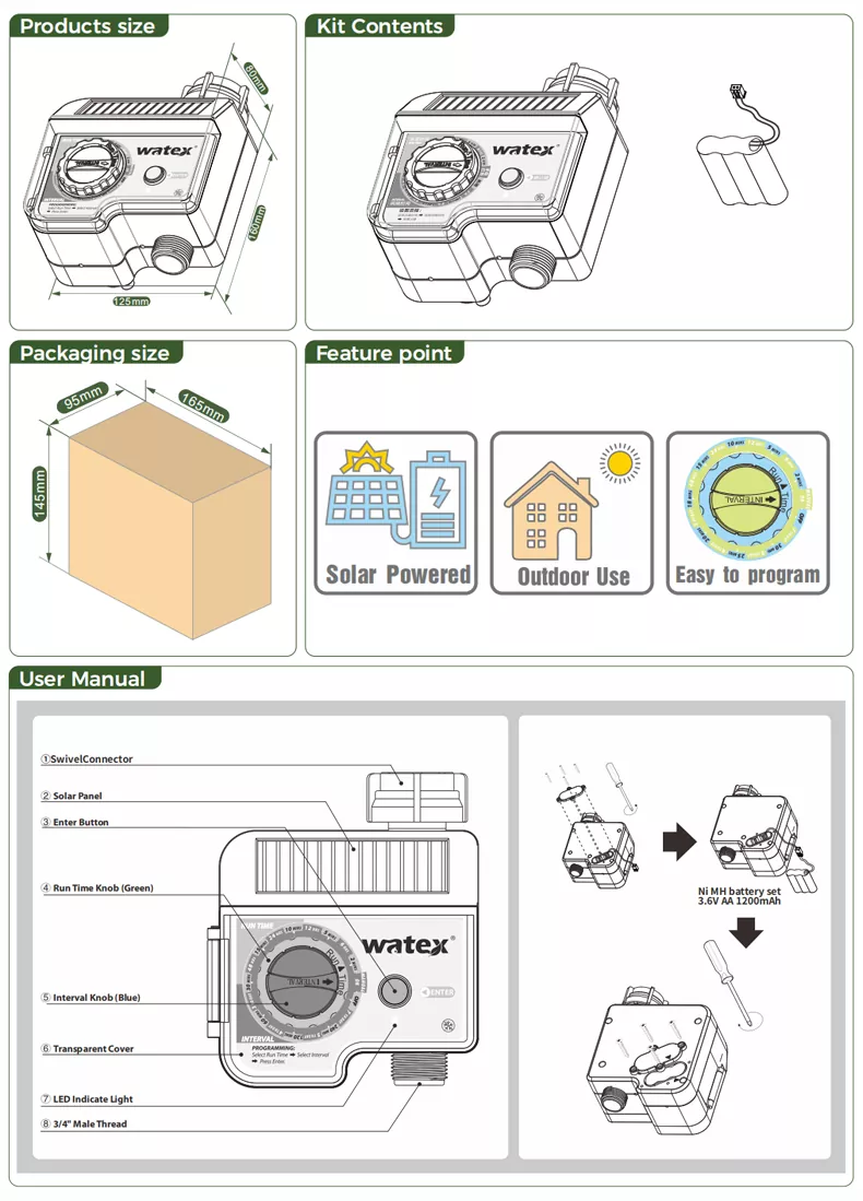 MMIP হল চীনের একজন পেশাদার প্রস্তুতকারক এবং সরবরাহকারী যারা স্মার্ট ওয়াটারিং এর জন্য সৌরশক্তি চালিত ট্যাপ টাইমারে বিশেষজ্ঞ। এই পণ্যটি একটি সৌর প্যানেল দিয়ে সজ্জিত, ব্যাটারি প্রতিস্থাপনের প্রয়োজন ছাড়াই ব্যবহারকারীদের সহজে সবুজ গাছপালাকে জল দিতে সক্ষম করে৷ এটি একটি বুদ্ধিমান জল দেওয়ার টাইমার যা চীনের গার্হস্থ্য গ্রাহকদের পক্ষে জিতেছে। এটা থাকার মূল্য একটি পণ্য