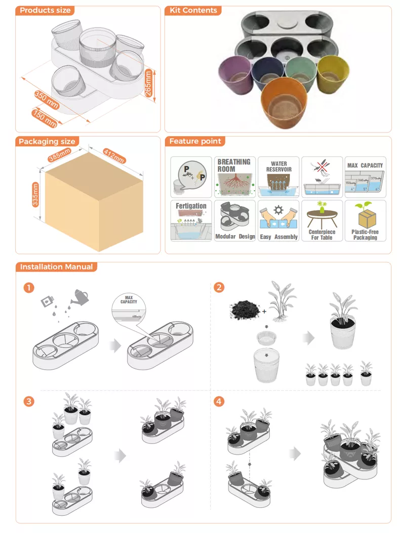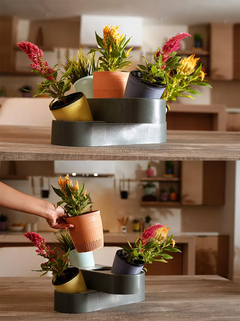 ফুলের পাত্র ঘর সাজানোর জন্য উপযুক্ত। আপনি তাদের মধ্যে আপনার প্রিয় সবুজ গাছপালা বা সবজি লাগাতে পারেন। জল দেওয়া খুব সুবিধাজনক। আপনি শুধু জল সঞ্চয় বেস জল বা পুষ্টির সমাধান যোগ করতে হবে. ফুলের পাত্রের নীচে একটি ফাঁপা নকশা রয়েছে, যা এটিকে আরও ভালভাবে জল শোষণ করতে দেয়।