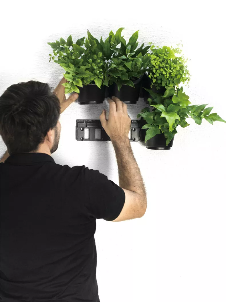 বিভিন্ন আকারের ঝুলন্ত স্ট্রাইপ এবং ঝুলন্ত উপযুক্ত পাত্রগুলি অভ্যন্তরীণ বা বাইরে সবুজ জীবন্ত প্রাচীর তৈরি করতে বেশ সহজ।